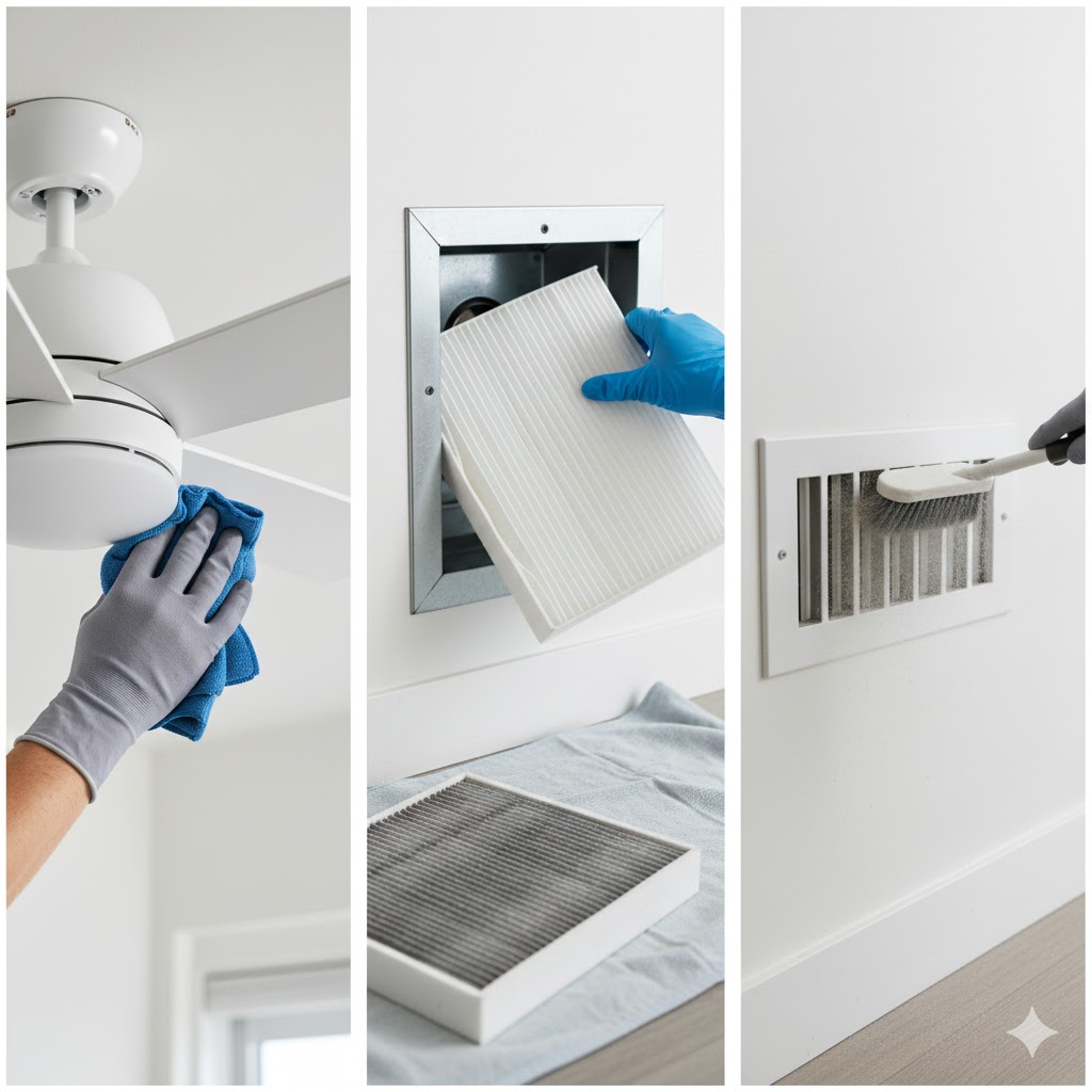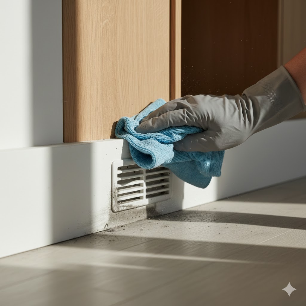 A home loses freshness when dust, pet hair, and bacteria build up in hidden areas. Focus on often-forgotten spots such as behind furniture, baseboards, vents, under appliances, and cushions. A quick vacuum or wipe-down keeps odors from settling and improves overall air quality.